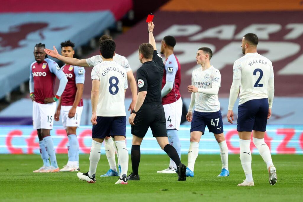 Numerical parity was restored in the 57th minute, however, when Cash received a second yellow card for a wild lunge on Foden.