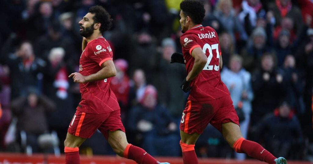 Mohamed Salah’s 150th Liverpool goal and Luis Diaz’s first kept the Reds in the hunt for the Premier League title as they came from behind to beat Norwich 3-1, while Chelsea snatched a late win at Crystal Palace on Saturday.