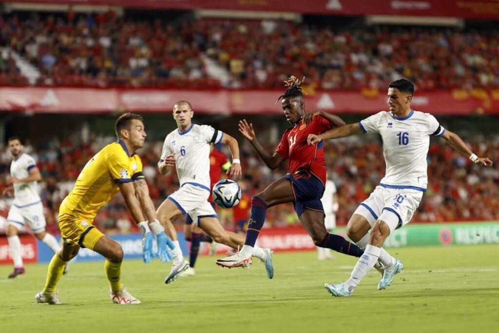 Spain thumped Cyprus 6-0 on Tuesday to keep their Euro 2024 qualification bid firmly on track after an early setback against Scotland.