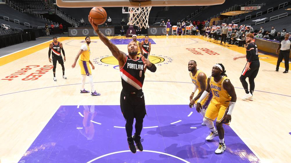Damian Lillard (31 points) and Gary Trent Jr. (28) inspired the Trail Blazers in a 115-107 victory over the Lakers.