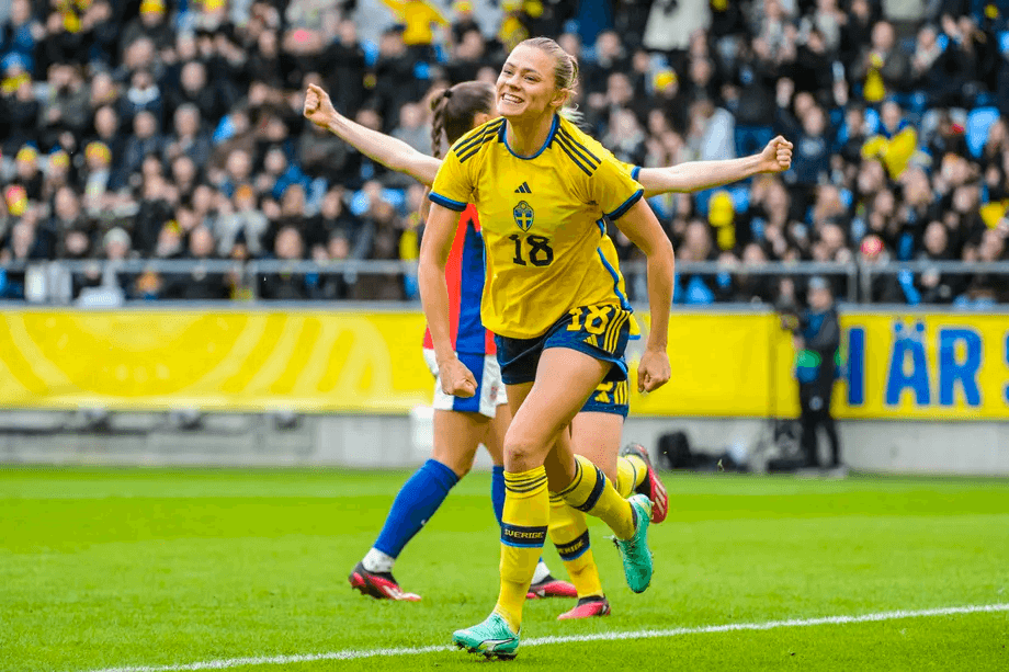 Jakobsson, who plays in the USA for San Diego Wave, delivered an inviting ball in from the right and Blomqvist simply could not miss.